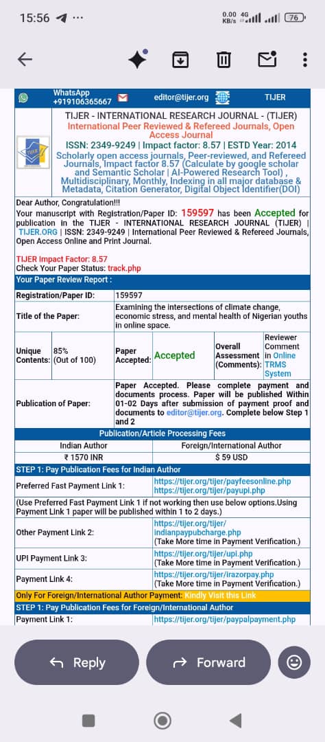 This timely and thought-provoking research explores how climate change and economic challenges intersect to affect the mental health of Nigerian youths, highlighting critical issues that resonate both locally and globally.