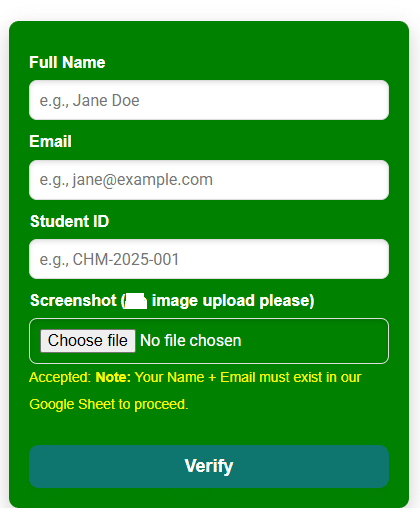 This project showcases the power of applied learning at CHM Tech Global. With determination and skills gained from our training, the student built a fully functional web app that addresses real-world challenges in digital verification.